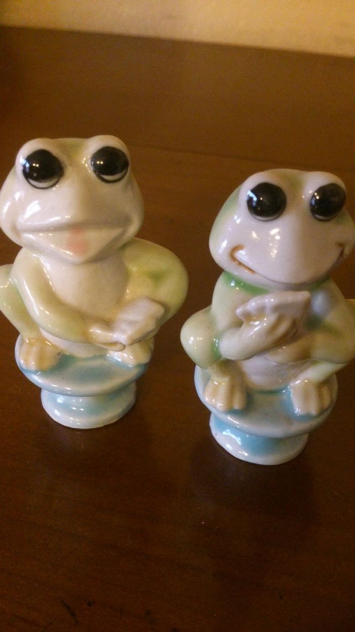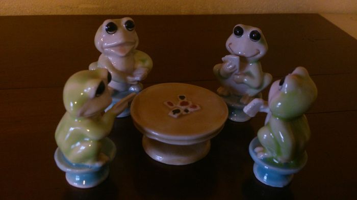 Vends lot de 4 grenouilles jouant aux cartes + la table En porcelaine