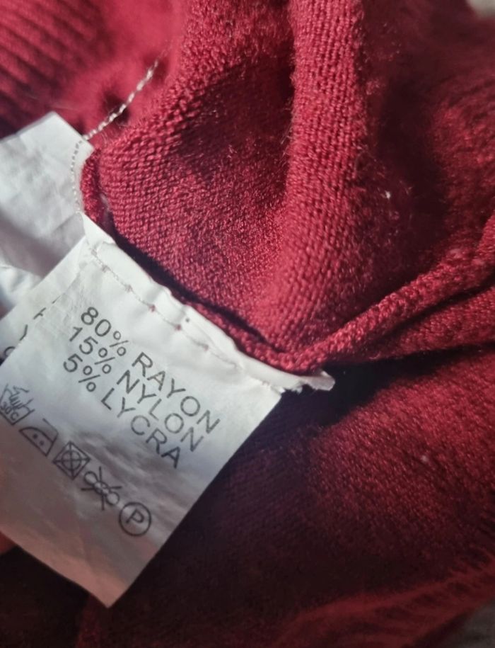 Débardeur bordeaux avec strass matière style pull taille M,longueur 58cm, largeur 36cm, longueur épaule à aisselle 19cm, largeur aisselle à aisselle 38cm.