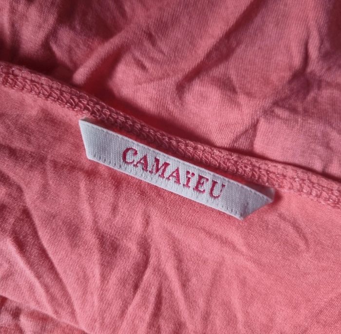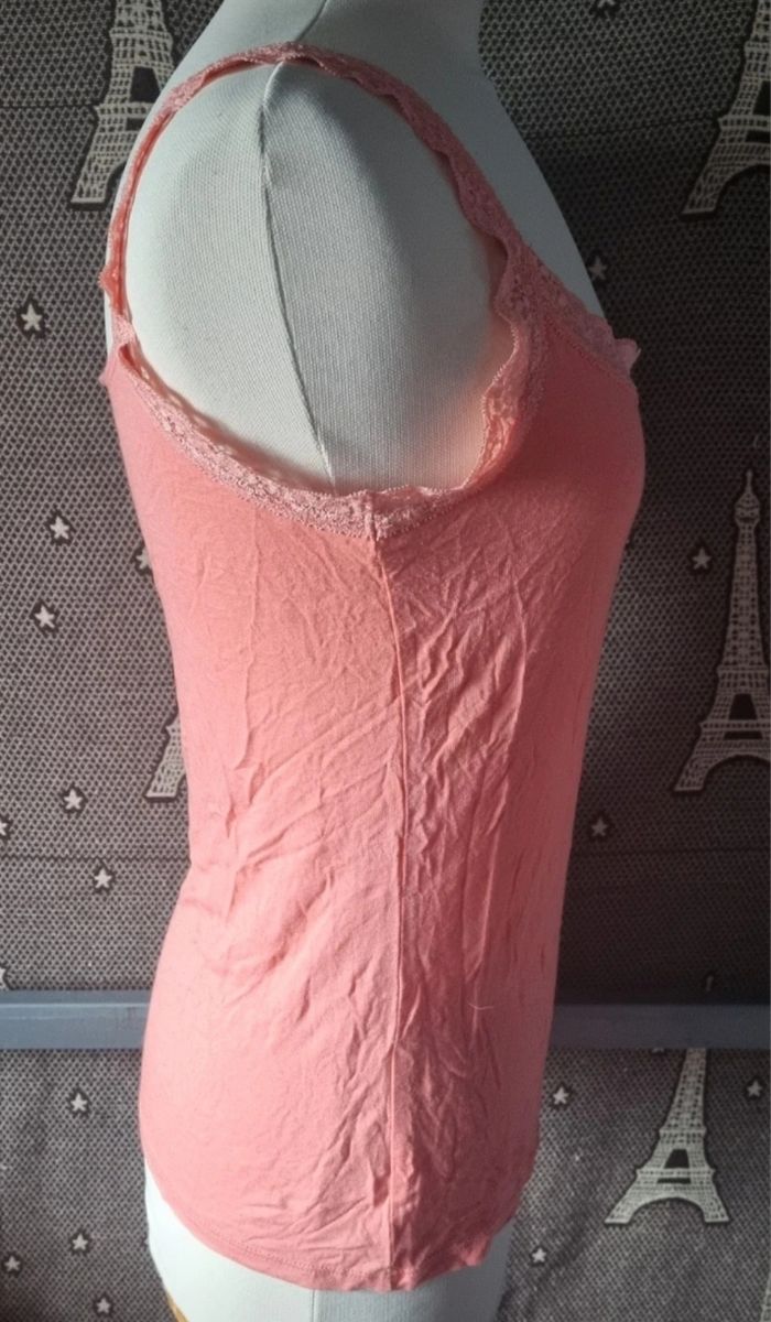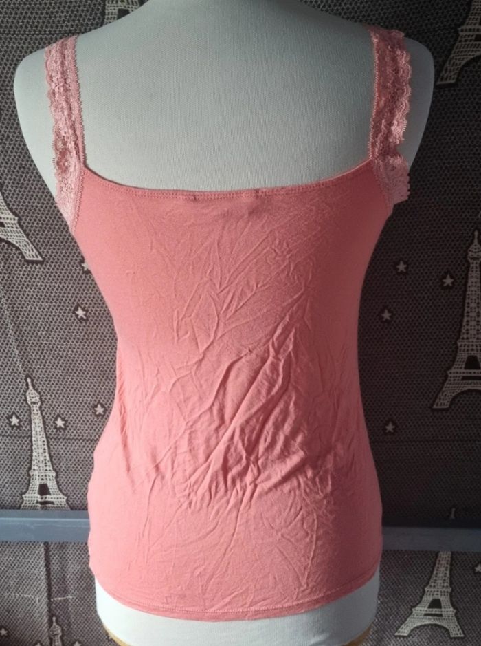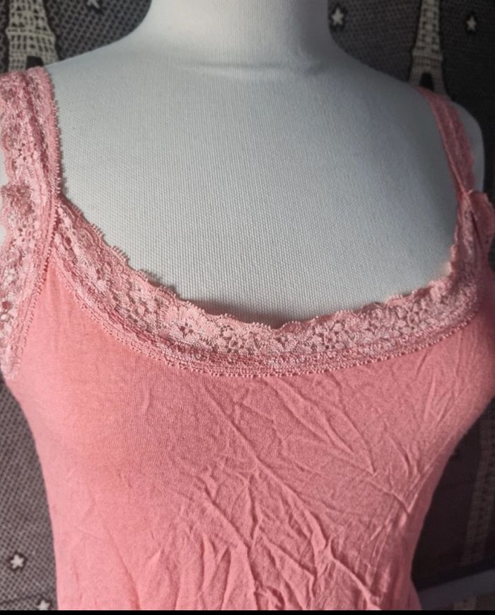Bustier rose avec dentelle, taille M marque Camaïeu, longueur 60cm, largeur 39cm,longueur épaule à aisselle 20cm ,largeur aisselle à aisselle 40cm.
