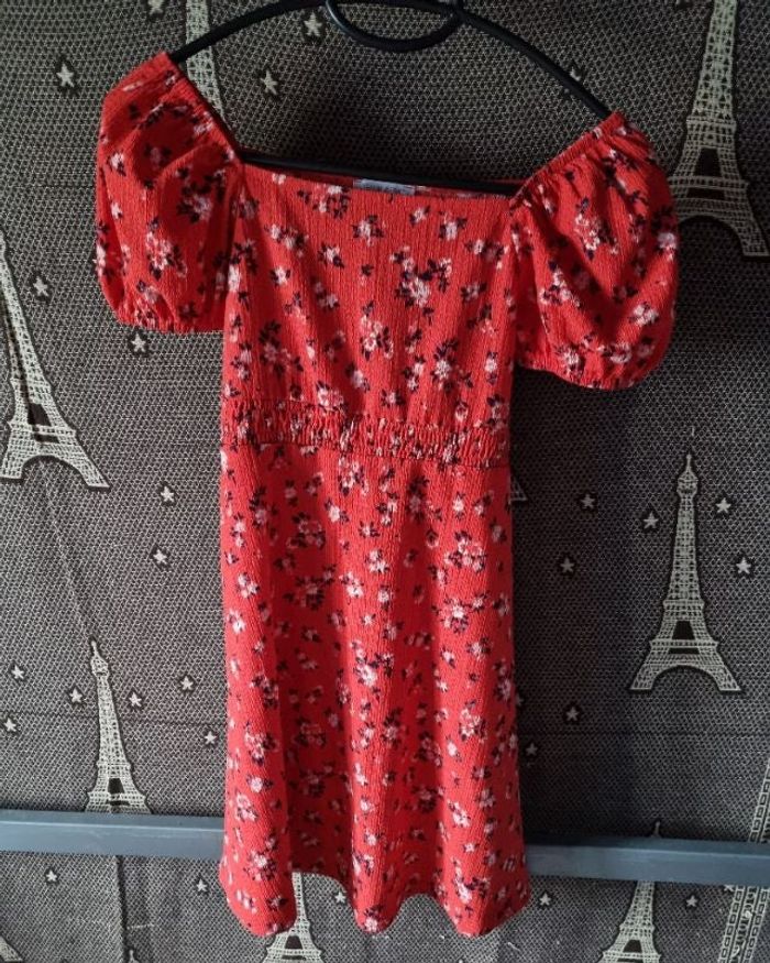 Robe rouge fleurie taille 11-12ans marque Primark,élastique à la taille et aux manches.