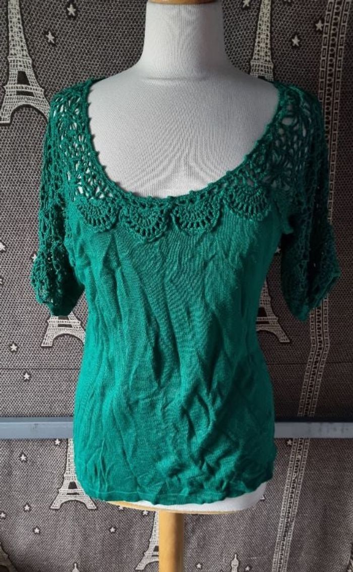Pull manches courtes avec broderie taille 38-40