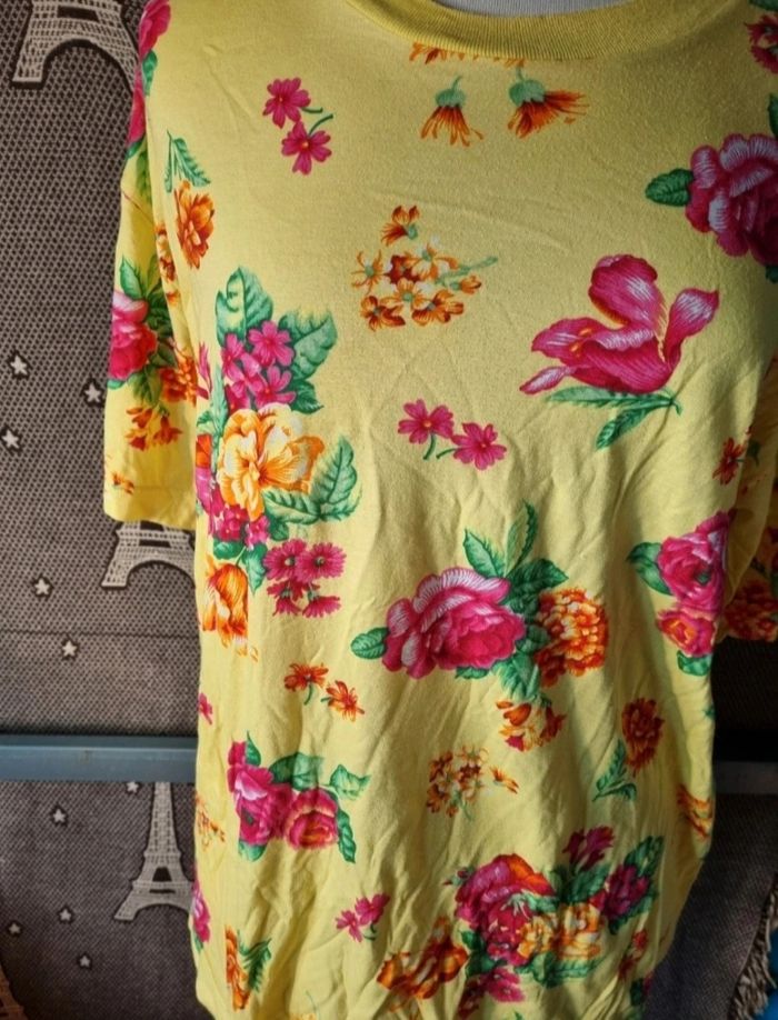 T-shirt jaune à fleurs taille M - photo numéro 1