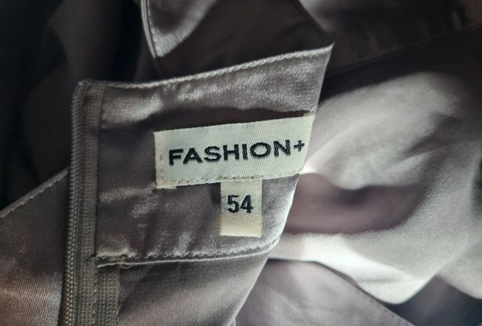 Tunique argenté effet satin ,taille 54 marque Fashion, longueur 84cm, largeur 69cm, longueur épaule à aisselle 33cm, largeur aisselle à aisselle 67cm.