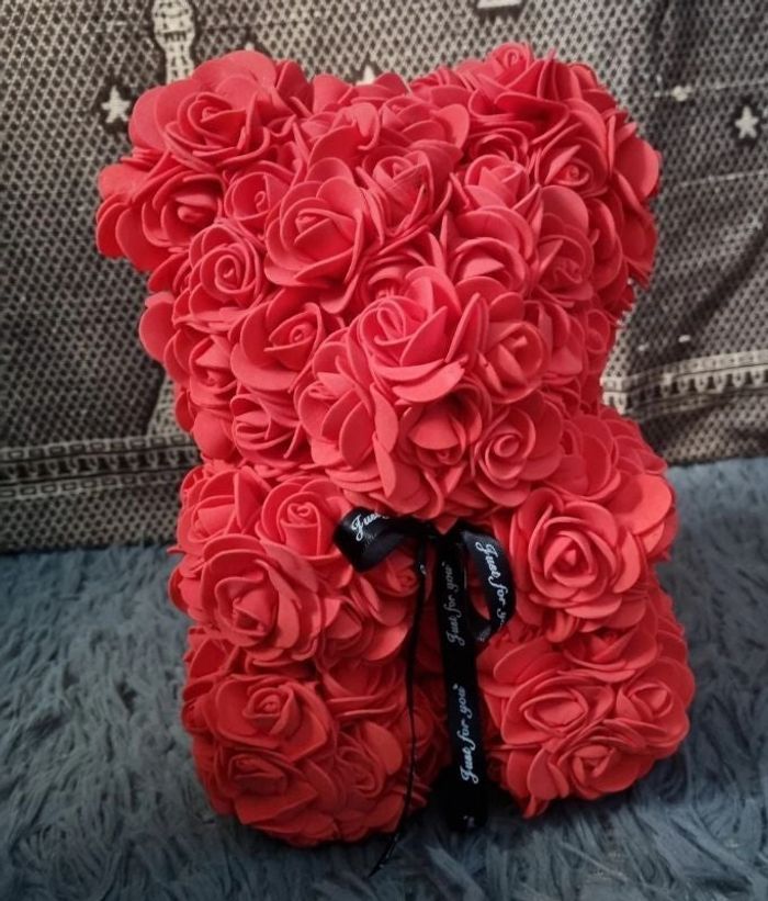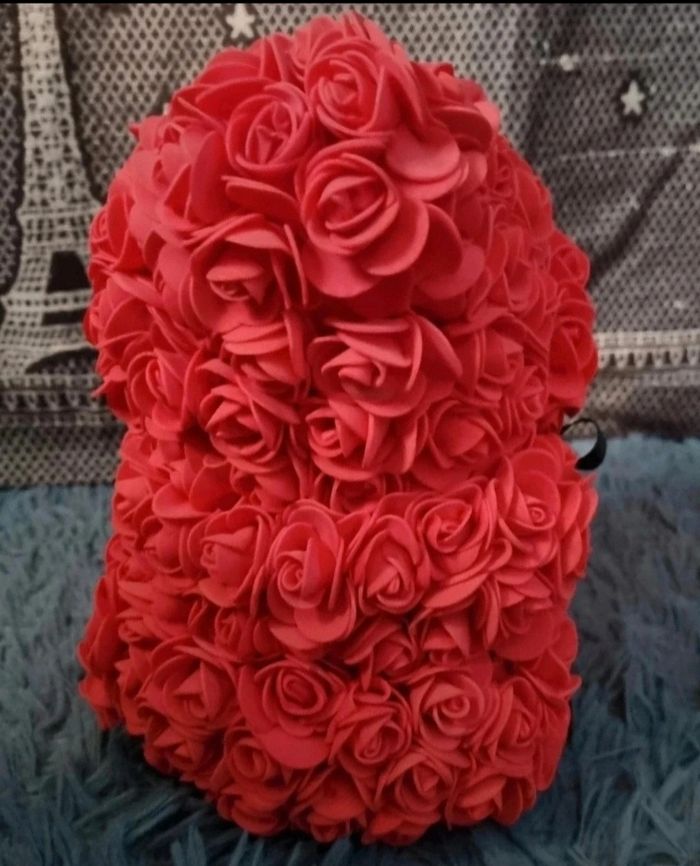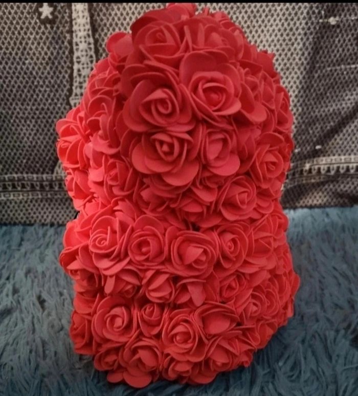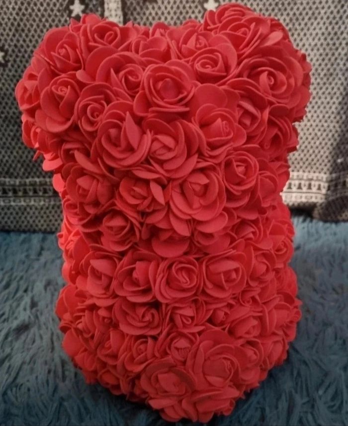 Décoration Ours en fleurs ,hauteur 23cm,(fausse fleurs en mousse),cadeau idéal pour la Saint Valentin 😉,(acheté sur Amazon).
