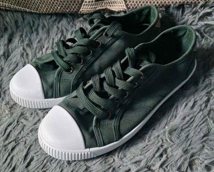 Basket basse à lacets, vert foncé, pointure 38 marque FPC Fashion Private Company, comme neuf porté 1fois pour une occasion.