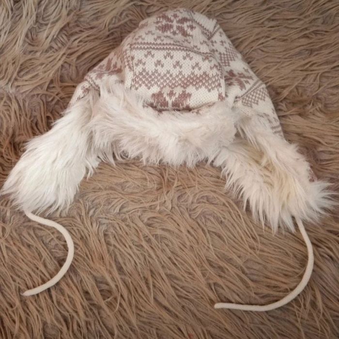 Bonnet à motifs avec fausse fourrure taille 57cm, cordon de serrage, tien bien chaud pour l'hiver 😉.