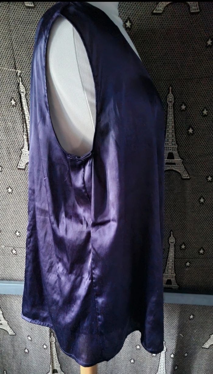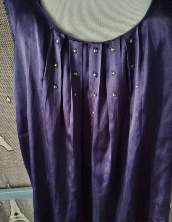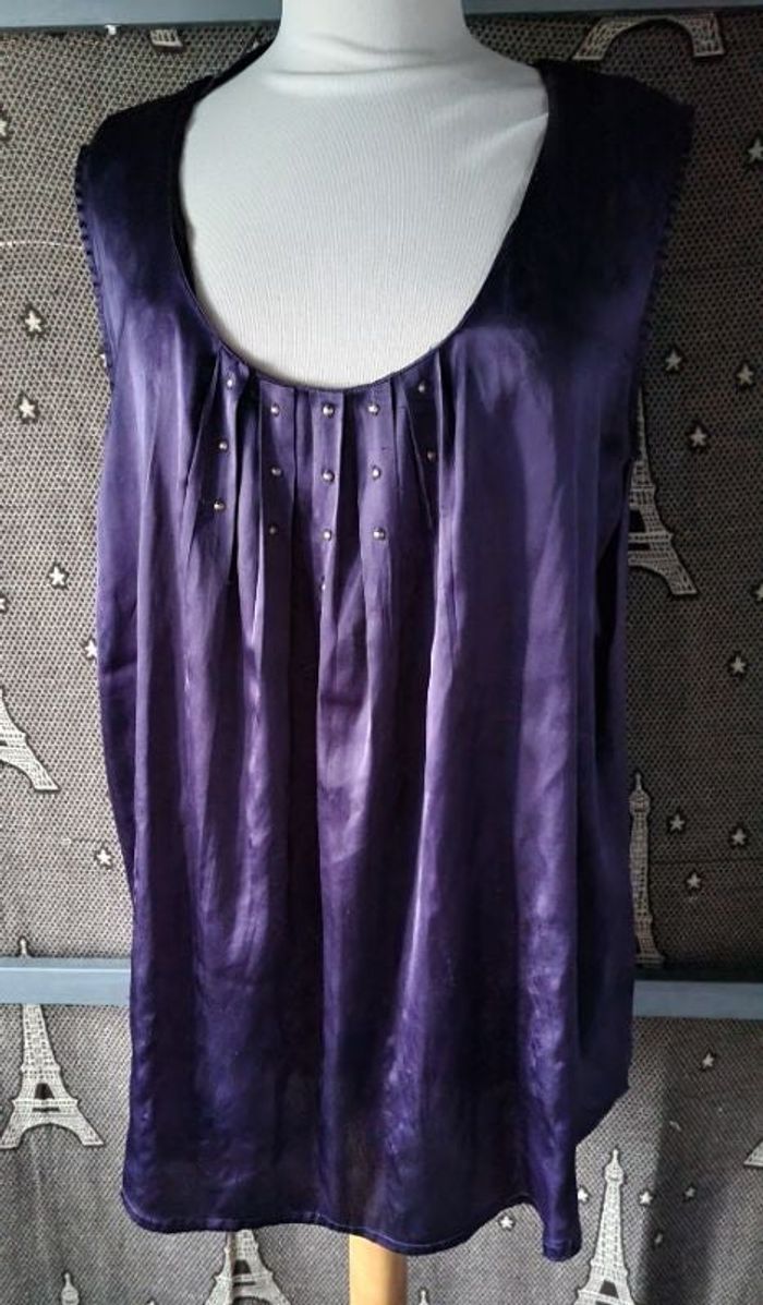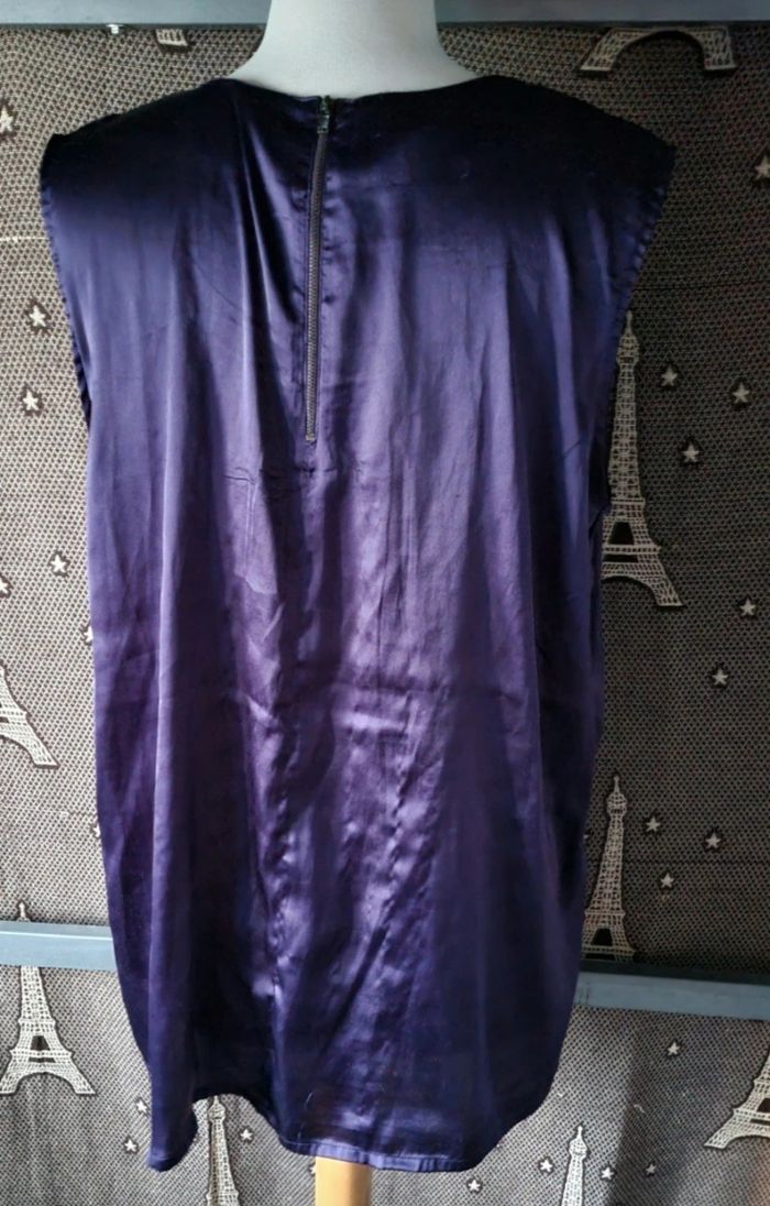 Top violet taille 54-56 marque Ikebana ,longueur 74cm, largeur 67cm, longueur épaule à aisselle 23cm, largeur aisselle à aisselle 48cm.