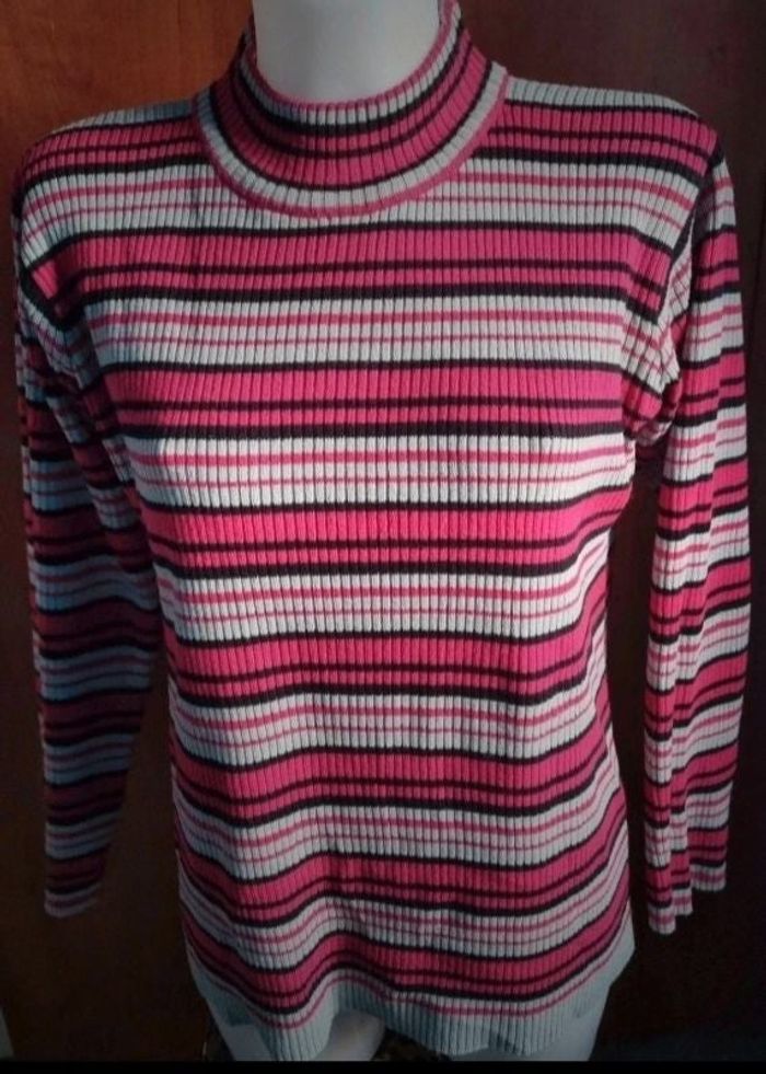 Pull à rayures taille 50,marque Bleu Bonheur,longueur 63cm, largeur 52cm, longueur épaule à aisselle 18cm, longueur manche 56cm.