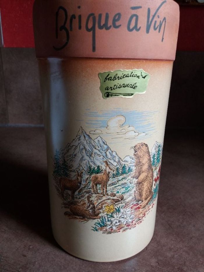 En terre cuite Ornée de motifs représentant les animaux de la montagne Pour conserver au frais vos bouteilles Fabrication artisanale Neuve jamais utilisée