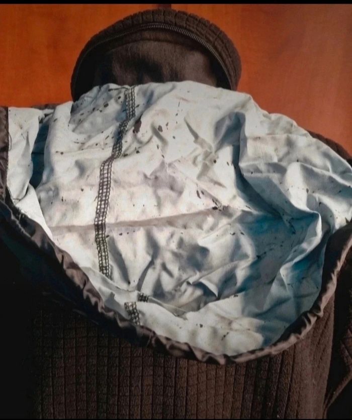 Veste polaire noir avec capuche qui peut être ramassé, taille 46-48, marque Nirvana, longueur 64cm, largeur 53cm, longueur épaule à aisselle 22cm, longueur manche 61cm, largeur épaule à épaule 43cm.