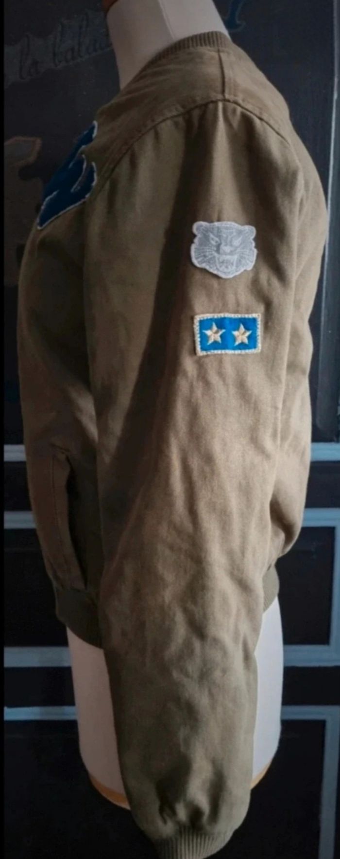 Veste zippée kaki avec écussons intérieur fourré taille XS - photo numéro 4