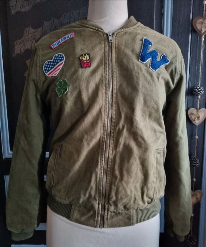 Veste zippée kaki avec écussons intérieur fourré taille XS - photo numéro 1