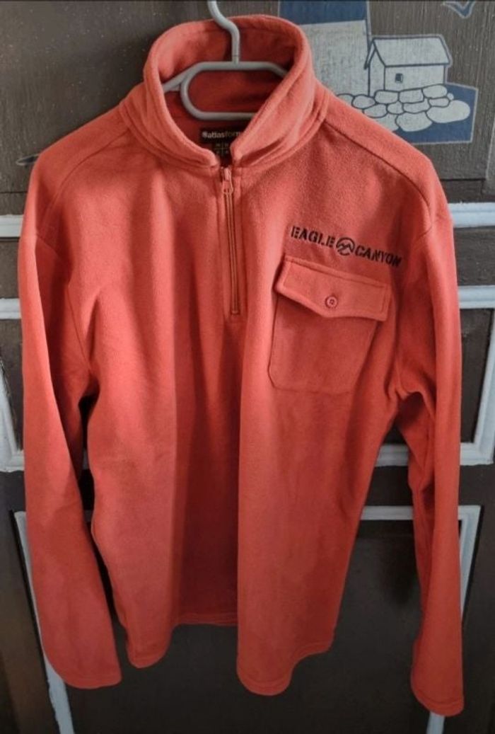 Pull d'hiver couleur brique, taille M marque Atlas for Men,longueur 71cm, largeur 50cm, longueur épaule à aisselle 23cm, largeur aisselle à aisselle 57cm, longueur manche 53cm, très chaud,comme neuf très peu porté.
