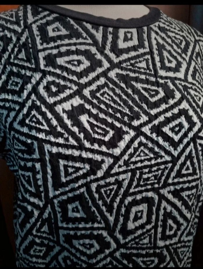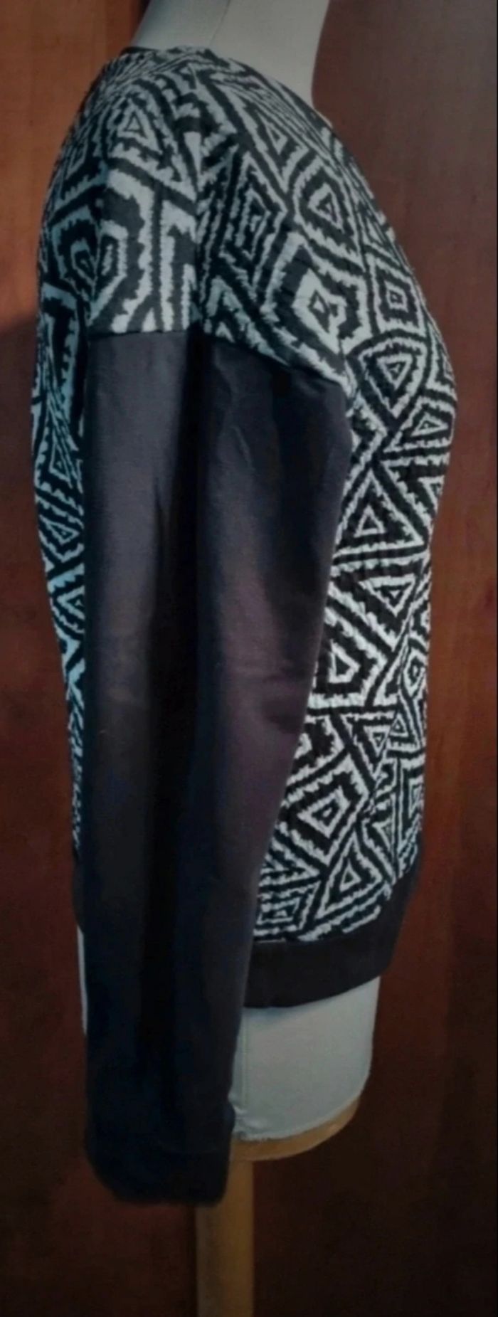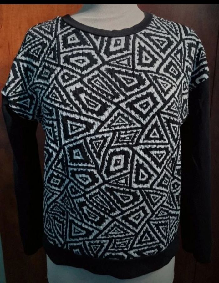 Sweat à motifs ,taille M marque Zara Trafaluc, longueur 55cm, largeur 48cm, longueur épaule à aisselle 15cm, longueur manche 44cm.