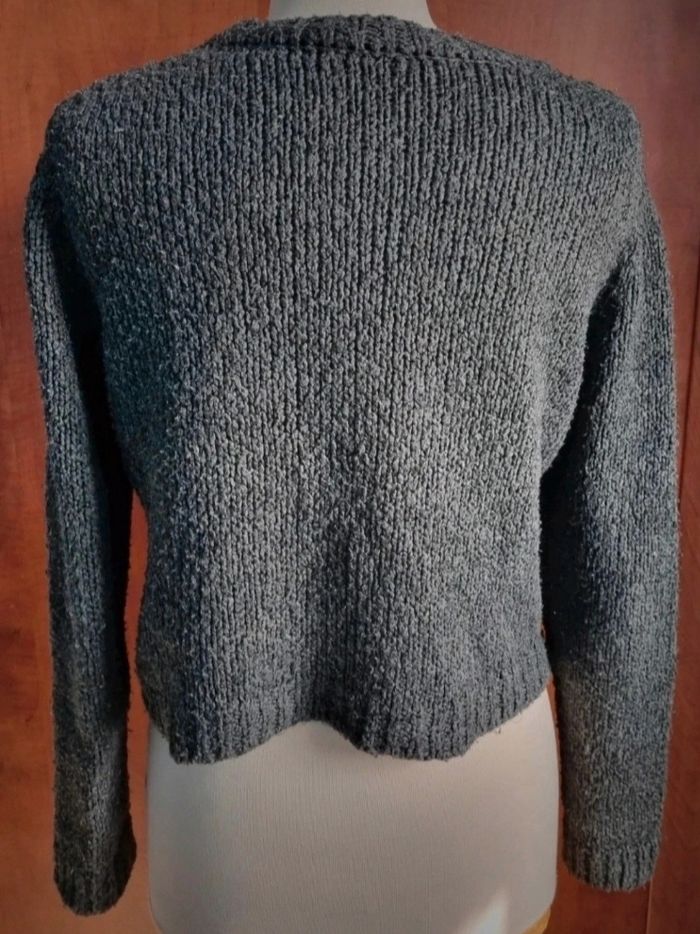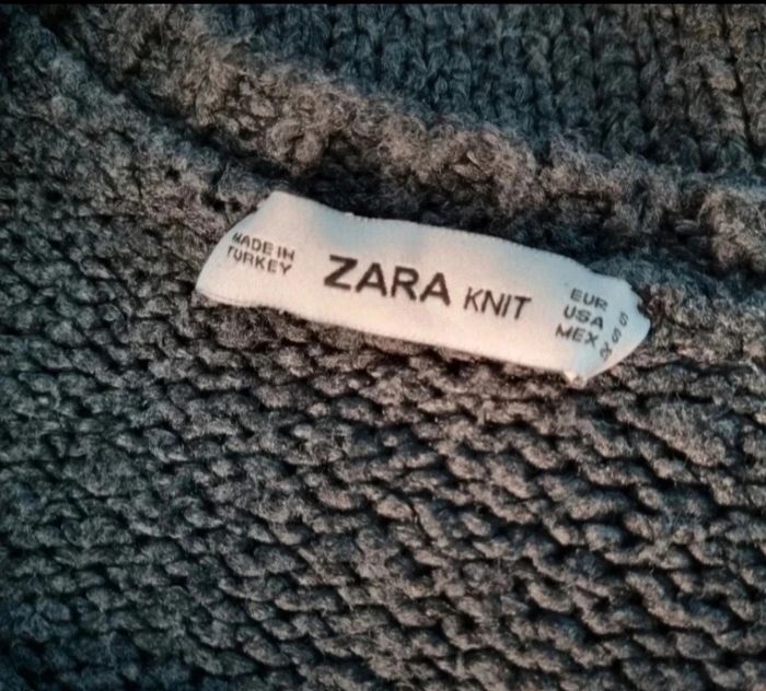 Pull gris avec zip dans le dos ,marque Zara knit,taille M,longueur 50cm, largeur 66cm, longueur épaule à aisselle 21cm, longueur manche 61cm.
