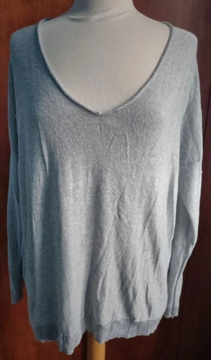 Pull col V gris pailleté taille M (oversize peut convenir à du 42-44)