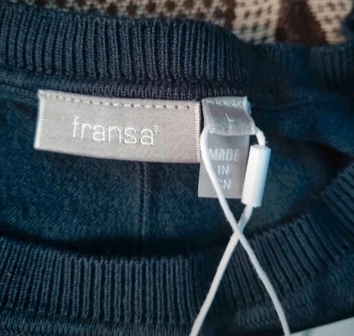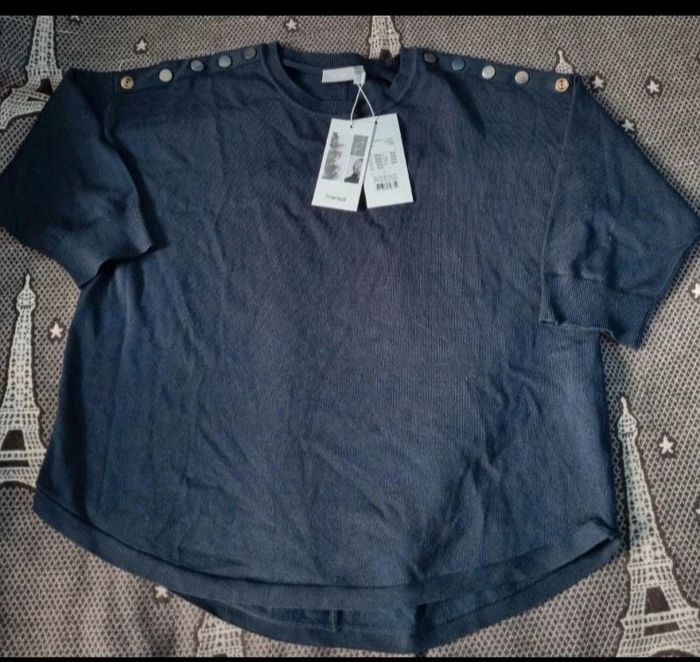 Sweat à manches ¾,taille L marque Fransa, longueur 59cm, largeur 55cm, longueur épaule à aisselle 19cm, longueur manche 30cm.