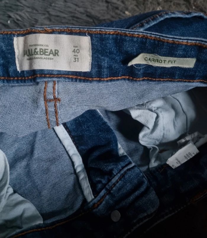 Jean carrot fit ,taille 40 marque Pull&bear, longueur 93cm, largeur de la taille 39cm, largeur cuisse 23cm, largeur cheville 13cm.