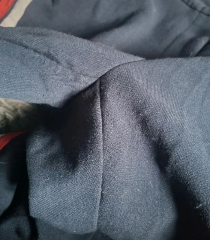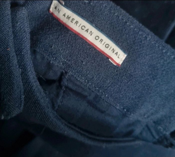 Pantalon marine ,taille 34-36 marque Tommy Jeans, 2 vrais poches avant et 2 vrais poches arrière, longueur 86cm, largeur de la taille 36cm, largeur cuisse 24cm, largeur cheville 17cm, peu porté.