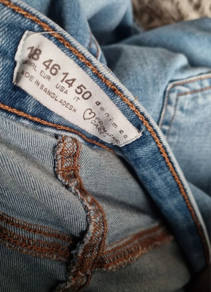 Jean taille haute, marque Primark taille 46,longueur 98cm, largeur de la taille 46cm, largeur cuisse 28cm, largeur cheville 13cm.