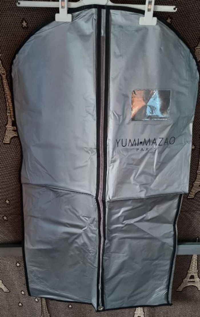 Housse pour vêtement grise ,fermeture zippée ,marque Yumi Mazao Paris,hauteur 100cm, largeur 58cm.