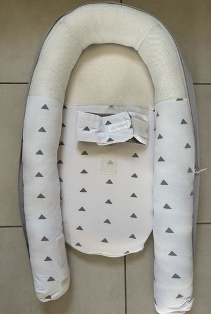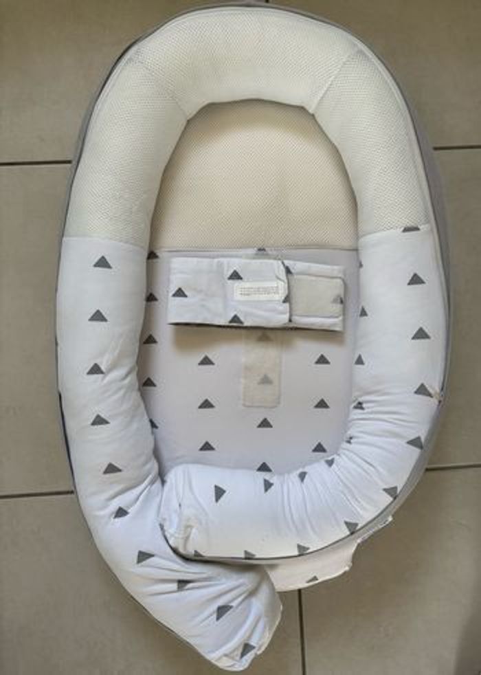 Cocoon réducteur doomoo, en très bon état, juste deux petit trou qui est affiché en photo et un peu griffé sur le tissus respirant ne gêne pas l’utilisation ,déhoussable pour un lavage en machine, de la naissance à 8 mois, évolutif ✨