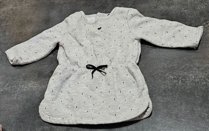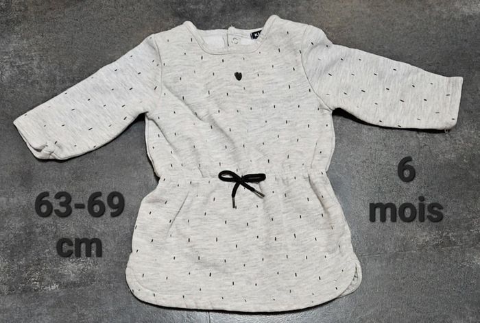Robe pull gris clair à poids. Toute douce, chaude. 6 mois, 63 - 69cm. Kiabi. Ma fille l'a portée qu'une seule fois et pas longtemps pour des photos car ce n'était pas la bonne saison. Donc elle est comme neuve. -> Tous les articles que je vend sont propres, lavés juste avant la vente avec une lessive adaptée aux bébés (sauf ceux qui sont neufs avec étiquette). Il faudra juste les repasser car je n'ai pas de fer à repasser. #mathilde06000_enfant_3mois #mathilde06000_enfant_6mois