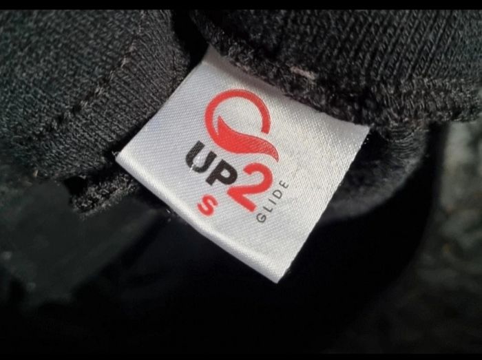 Pantalon de sport gris chiné et noir,taille S marque Up2glide,élastique à la taille avec cordon, 2 poches zippée, longueur 96cm, largeur de la taille 37cm jusqu'à 40cm, largeur cuisse 24cm, largeur cheville 13cm.