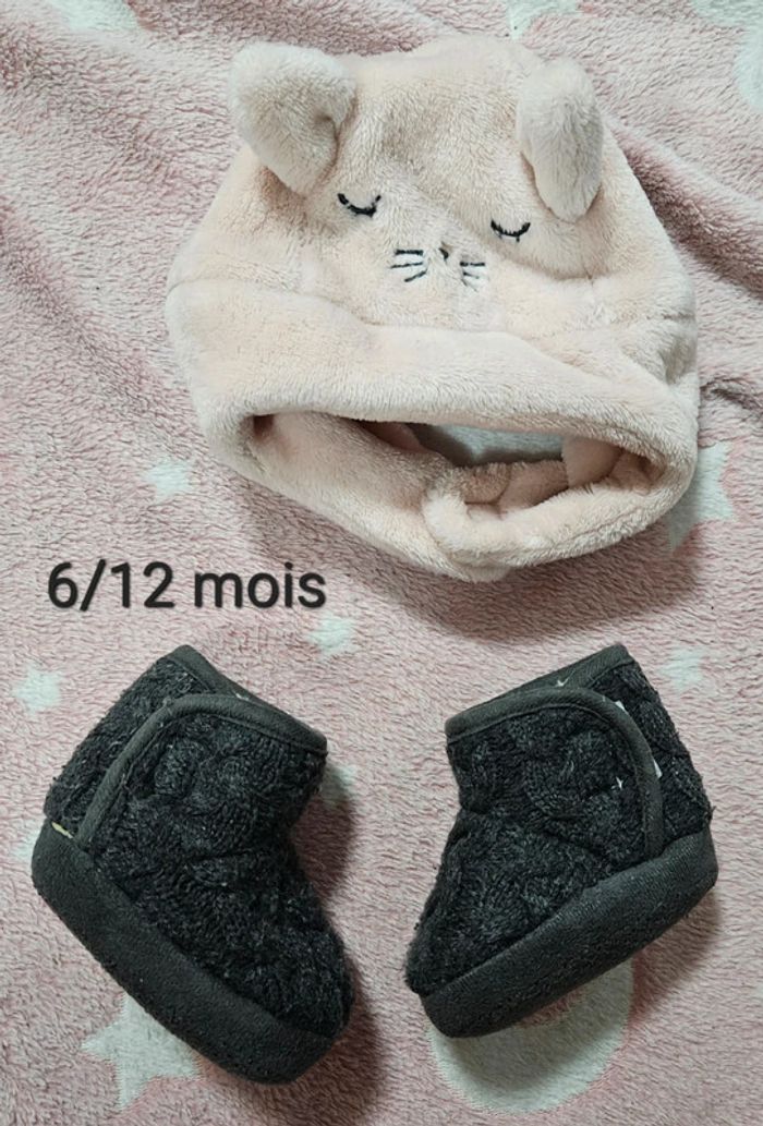 Lot chaussons et bonnet chat. Taille 6/12mois.