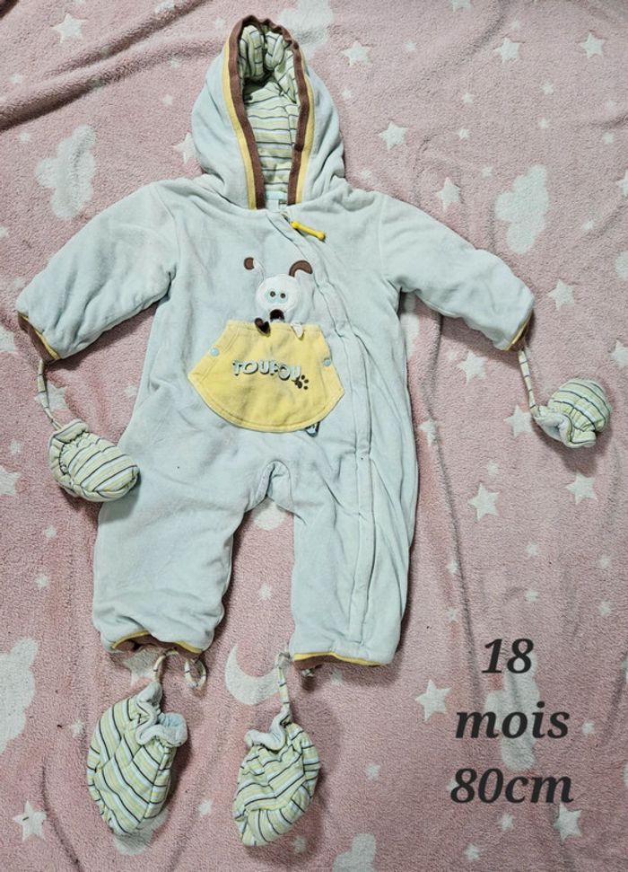 Combinaison pilote motif chien, avec moufles et pieds 18 mois