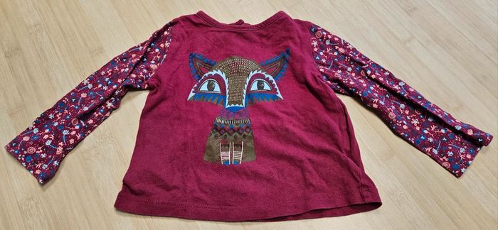 Tee-shirt rouge avec un loup. 12 mois, 74cm. De la marque : Bébé rêve. 100% coton - photo numéro 2
