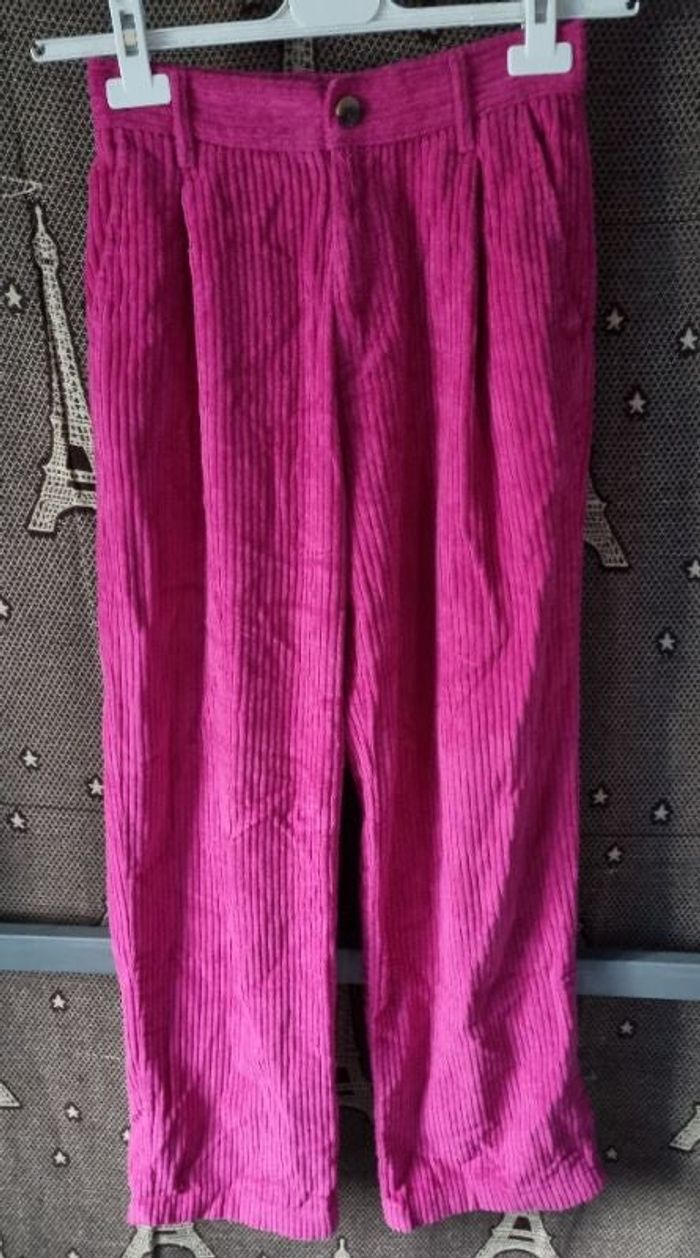 Pantalon fuchsia velours côtelé taille 34 - photo numéro 1