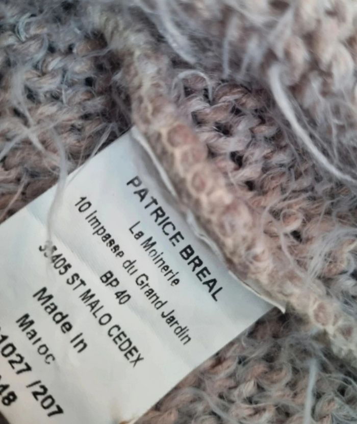 Cardigan couleur crème effet fausse fourrure style mohair, taille 38-40 marque Patrice Breal,longueur 57cm, largeur 46cm, longueur épaule à aisselle 15cm, largeur aisselle à aisselle 49cm, longueur manche 47cm.