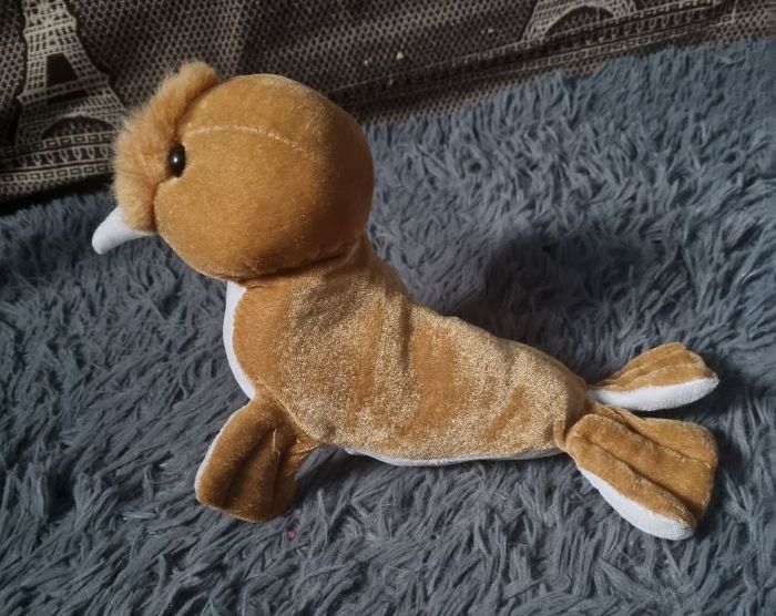 Animal en peluche Morse,(mesures approximative) longueur 30cm, largeur 8cm, hauteur 17cm.