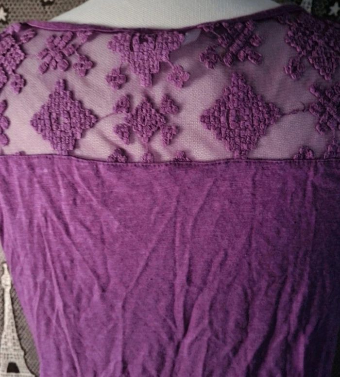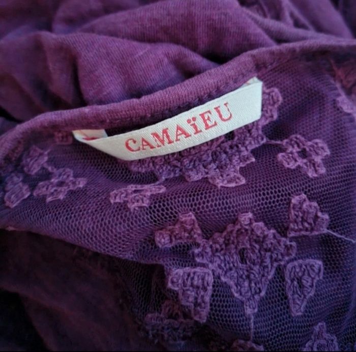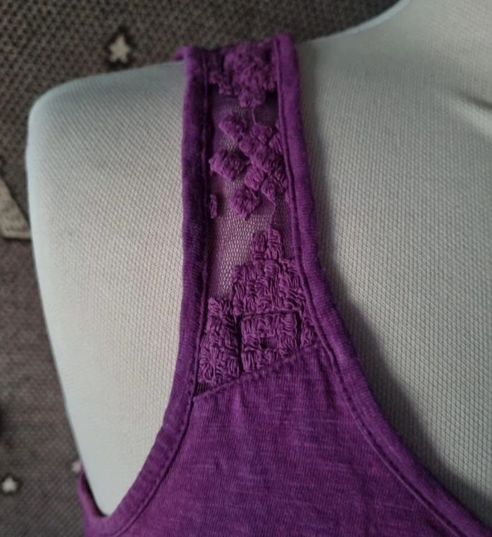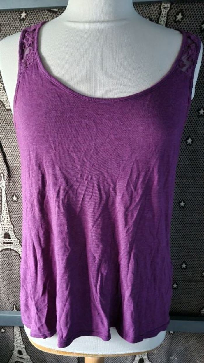 Débardeur violet taille 40 marque Camaïeu, longueur 62cm,largeur 46cm,longueur épaule à aisselle 22cm ,largeur aisselle à aisselle 46cm.