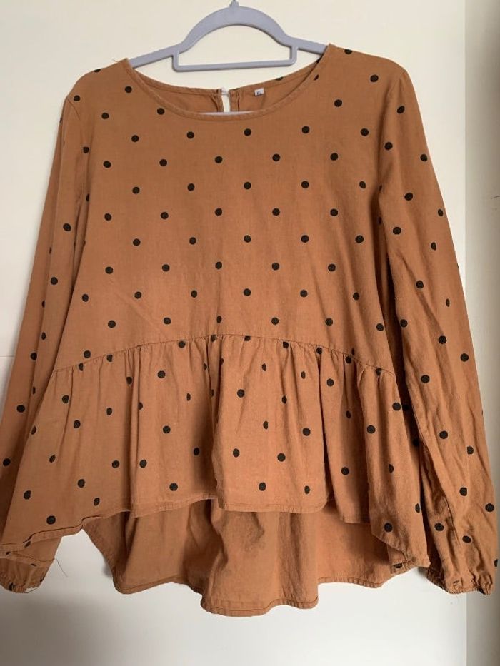 Blouse camel à pois noirs