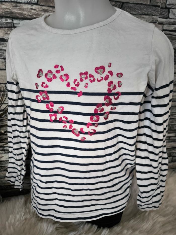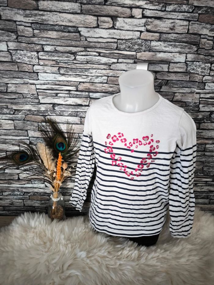 🤍 T-shirt manches longues marinière cœur pailleté In Extenso en 8 ans 🤍 - photo numéro 1