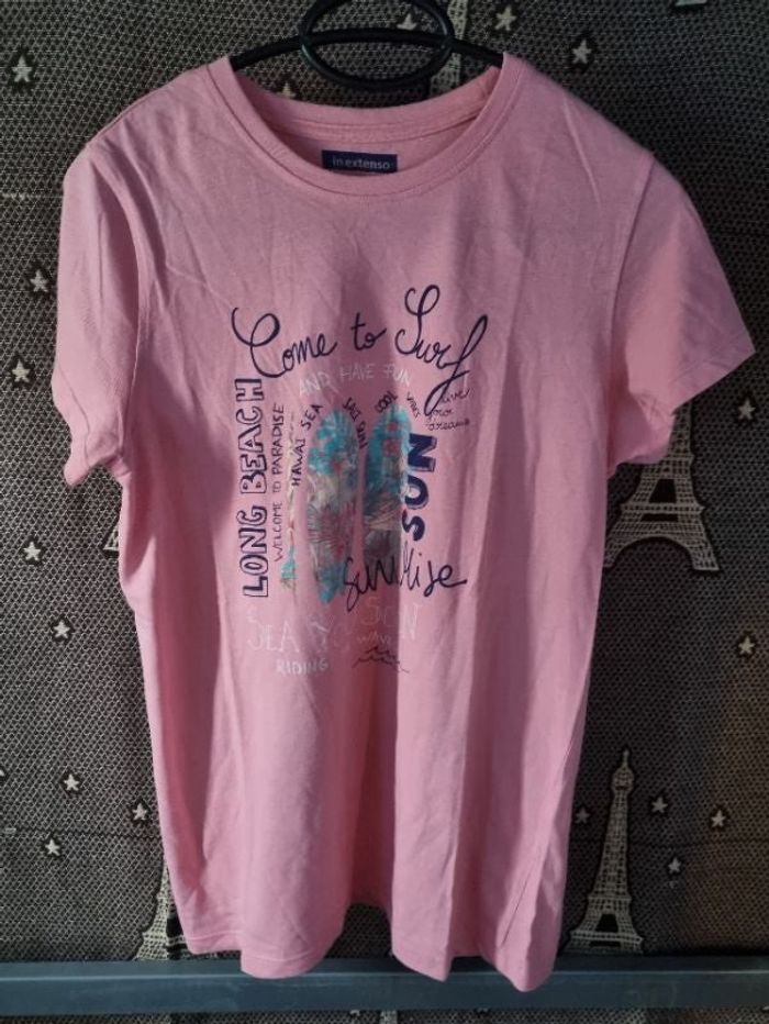 T-shirt rose avec écriture, taille 14ans marque In extenso.