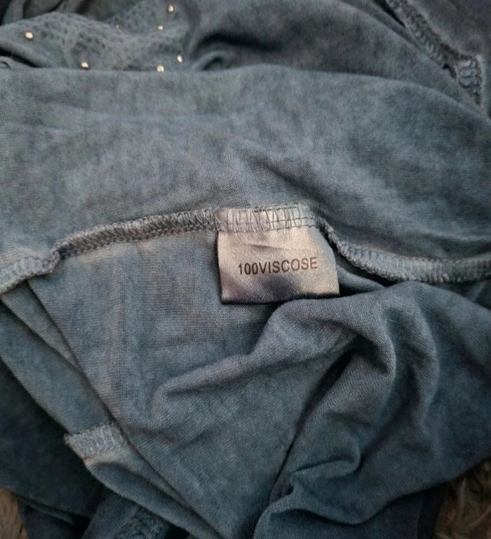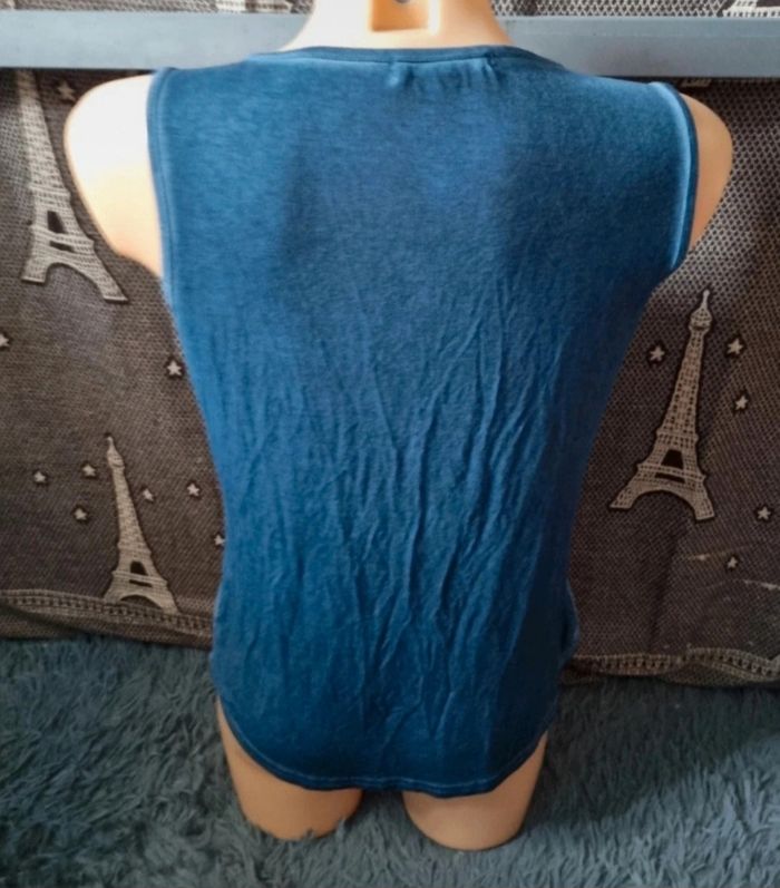 Débardeur bleu avec strass et perles taille S - photo numéro 7