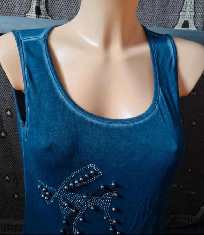 Débardeur bleu avec strass et perles taille S - photo numéro 2