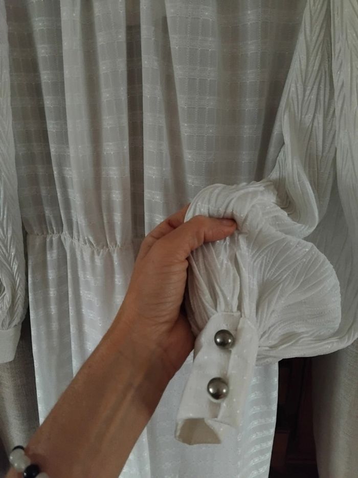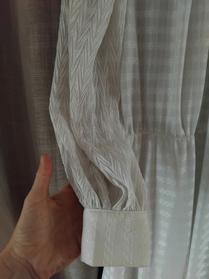 Légère files argentés dans la matière conviendra pour un 40 il n y a pas de ceinture Doublée par un jupon à porter avec un caraco Robe en parfait état général D autres disponibles en même taille #valpotin40femme