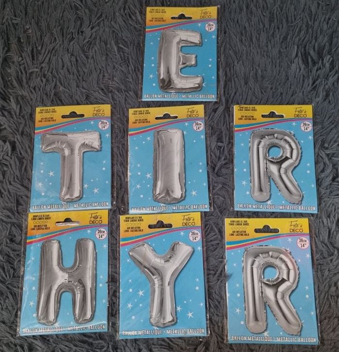 Lot ou unité Ballon Lettre couleur métallique, avec paille pour gonflé, lot 6€ ou 1€ unité.