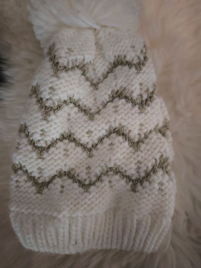 🤍 Petit bonnet bien chaud blanc et doré avec son pompon 🤍 - photo numéro 2