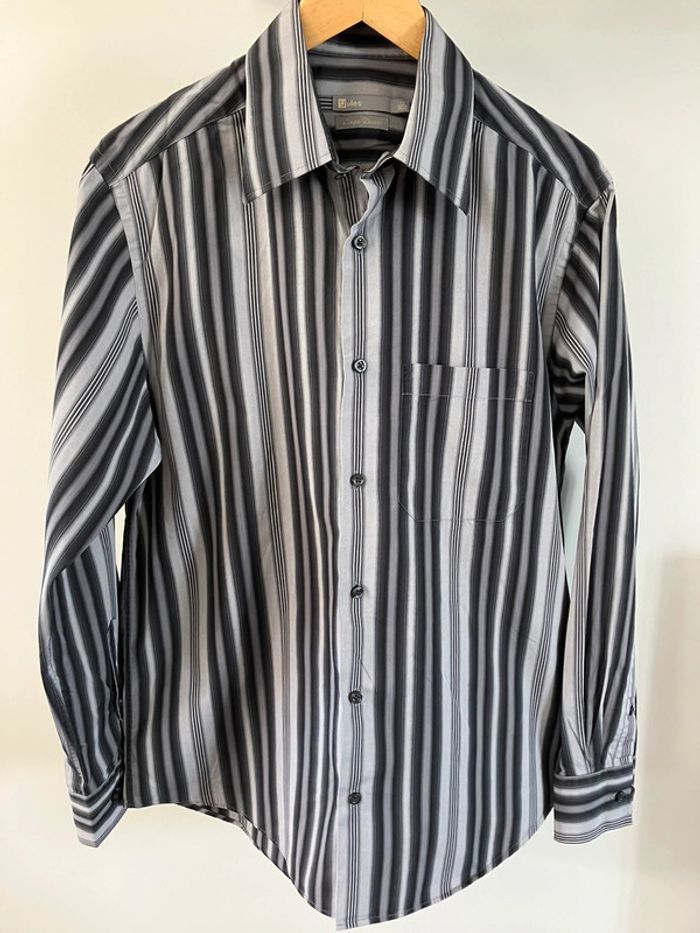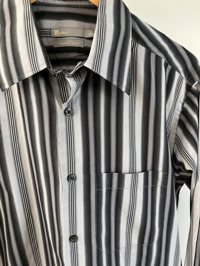 Chemise droite à manches longues, rayée noire et grise, 100% coton, de marque Jules, taille 3 (39/40) Très bon état