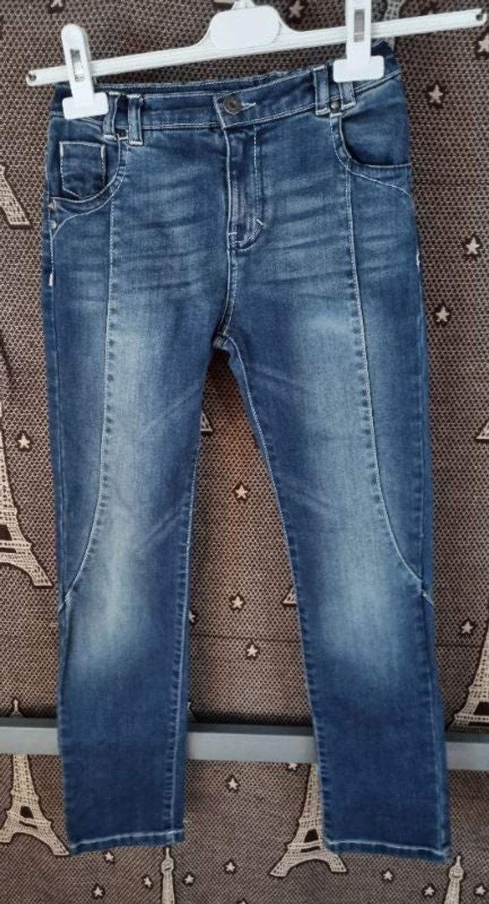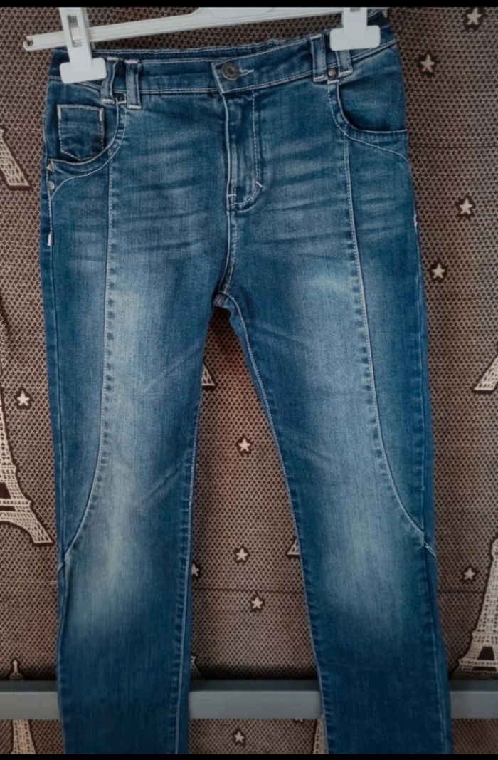 Jean effet délavé slim fit, taille 10ans marque Jean's U,réglable à l'intérieur, fermeture zippée avec bouton.