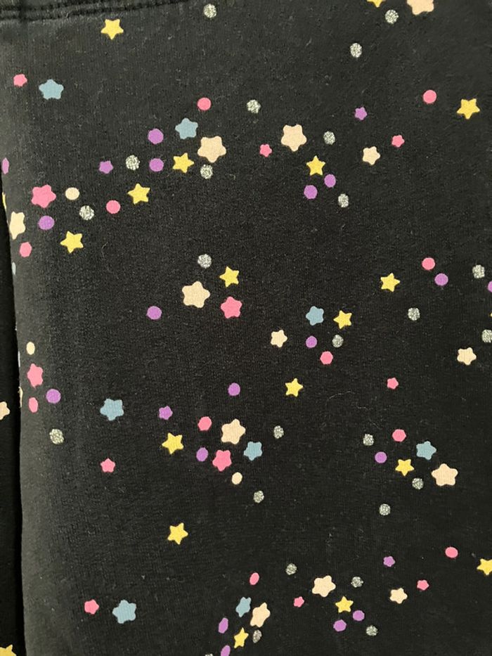 Legging noir avec des motifs (étoiles, ronds…) multicolores, de marque H&M, 95% coton 5% elasthane, taille 8-9 ans (134 cm) Très bon état