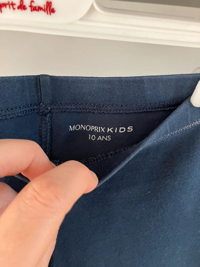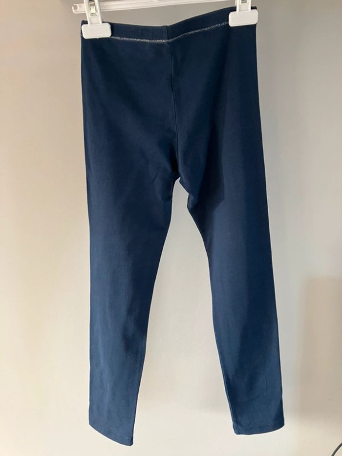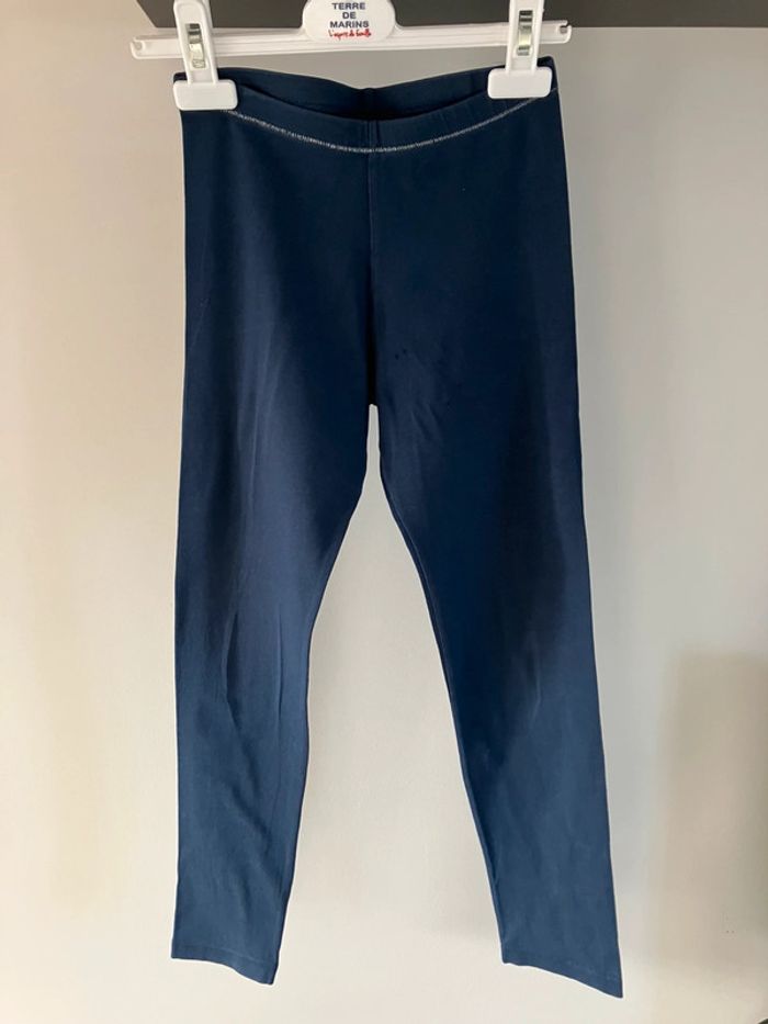 Legging bleu marine avec liseré argenté à la taille, 96% coton 4% elasthane, de marque Monoprix kids, taille 10 ans Très bon état