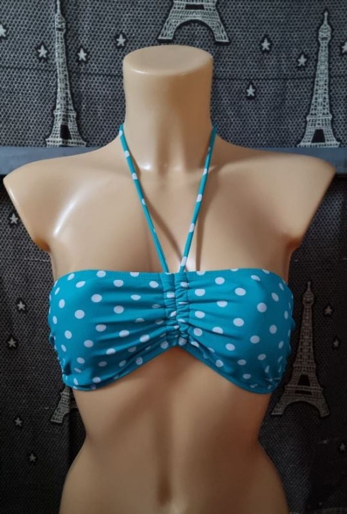 Haut de maillot de bain bleu clair à pois blanc, taille 38 marque Tissaia.