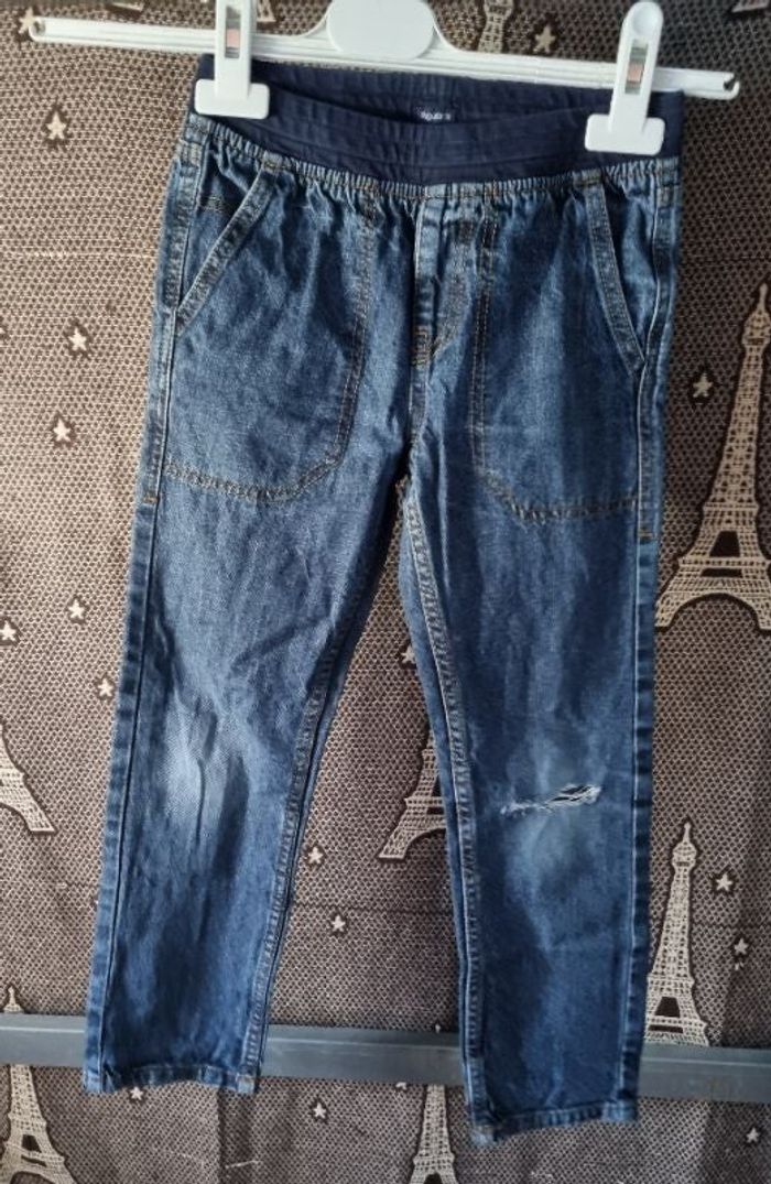 Jeans élastique à la taille, regular fit, taille 8ans marque Kiabi avec trou.