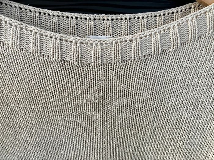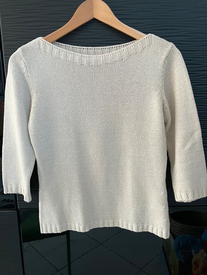 Pull cintré beige, manches trois quart, de marque Camaïeu, taille supposée 2 Bon état, mais l’étiquette de taille et de composition est complètement effacée